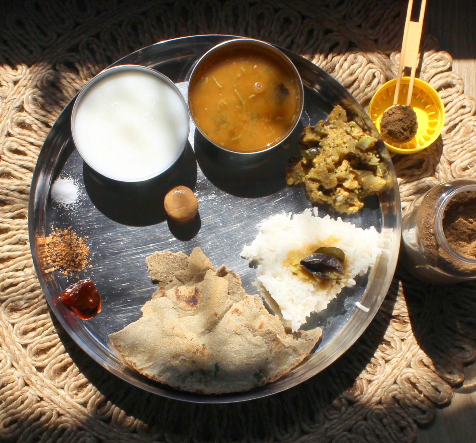 I would be pottering around and listening to Kaki's stories of travel. This image of gor papdi tied up in a cloth potli has stayed in my mind. Of the travelers eating it under the tree and drinking water from a kamandalu.